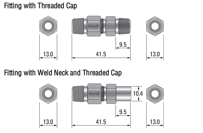 Standard Fitting with a Style B threaded extension for conduit/terminal head or enclosure connection. The thread form is the same as the process thread unless otherwise specified. If a different thread form is required, please specify after the 'B' in the order code, for example: If a B cap is used with a weld neck fitting, then the thread form must be specified. |