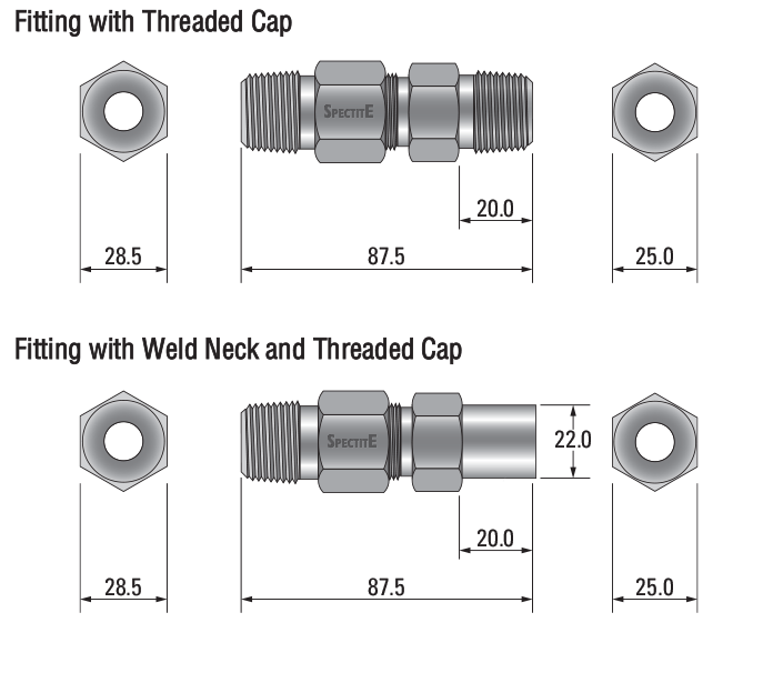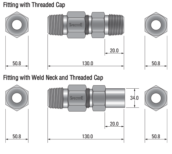 | Allows the gland to be terminated into the process as well as to a terminal head or conduit at the opposite end to the process. | Supplied without thread for permanent installation into the process by welding. | For termination to a mating flange within the process, see Optional Flanges for details of the flanges available as standard. |
